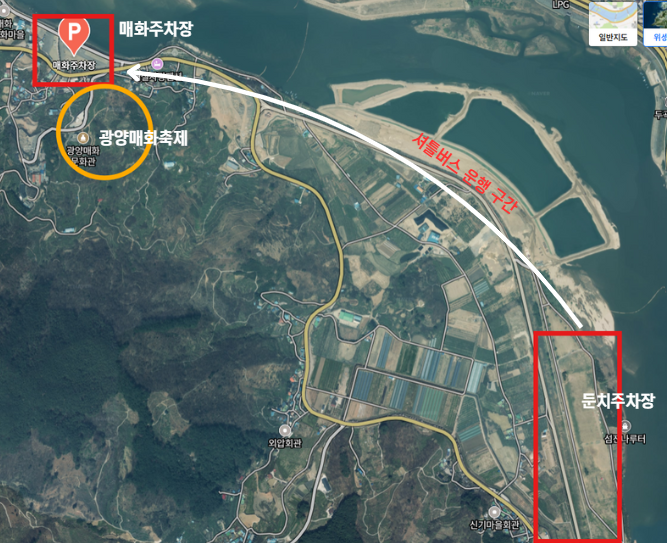 광양매화축제장 주변은 주차공간이 한정되어 있어, 공식 셔틀버스를 적극 활용하는 것이 가장 편리합니다. 특히 주말에는 극심한 교통 정체가 예상되므로, 가능한 한 일찍 도착하거나 대중교통과 셔틀버스를 이용하는 것을 추천드립니다.